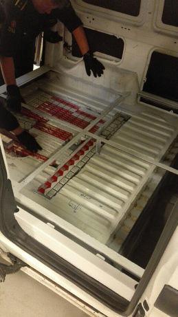 Den andre bilen hadde dobbelt gulv som skjulte 20 000 sigaretter. Til sammen ble det funnet 50 kartonger med Marlboro red og 50 kartonger med Marlboro light. Dette utgjør unndratte avgifter på 60 813 kroner.