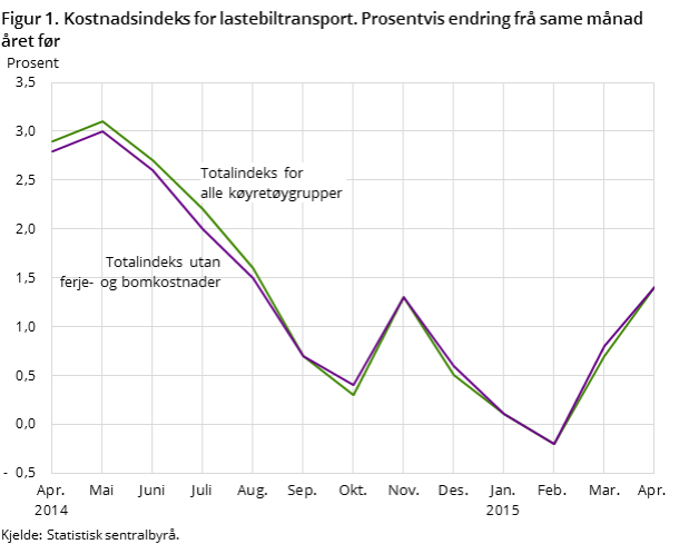 Administrasjonskostnadene auka med 0,3 prosent den siste månaden. Frå april 2014 til april 2015 var det en auke på 2,9 prosent.