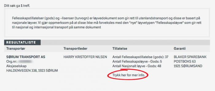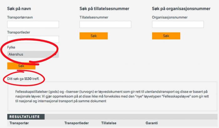 Vegvesenet har lenge hatt et åpent register hvor samtlige transportører i Norge registrert med løyve kan søkes opp.