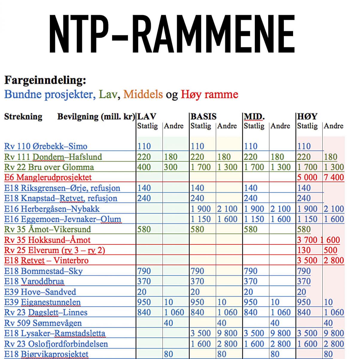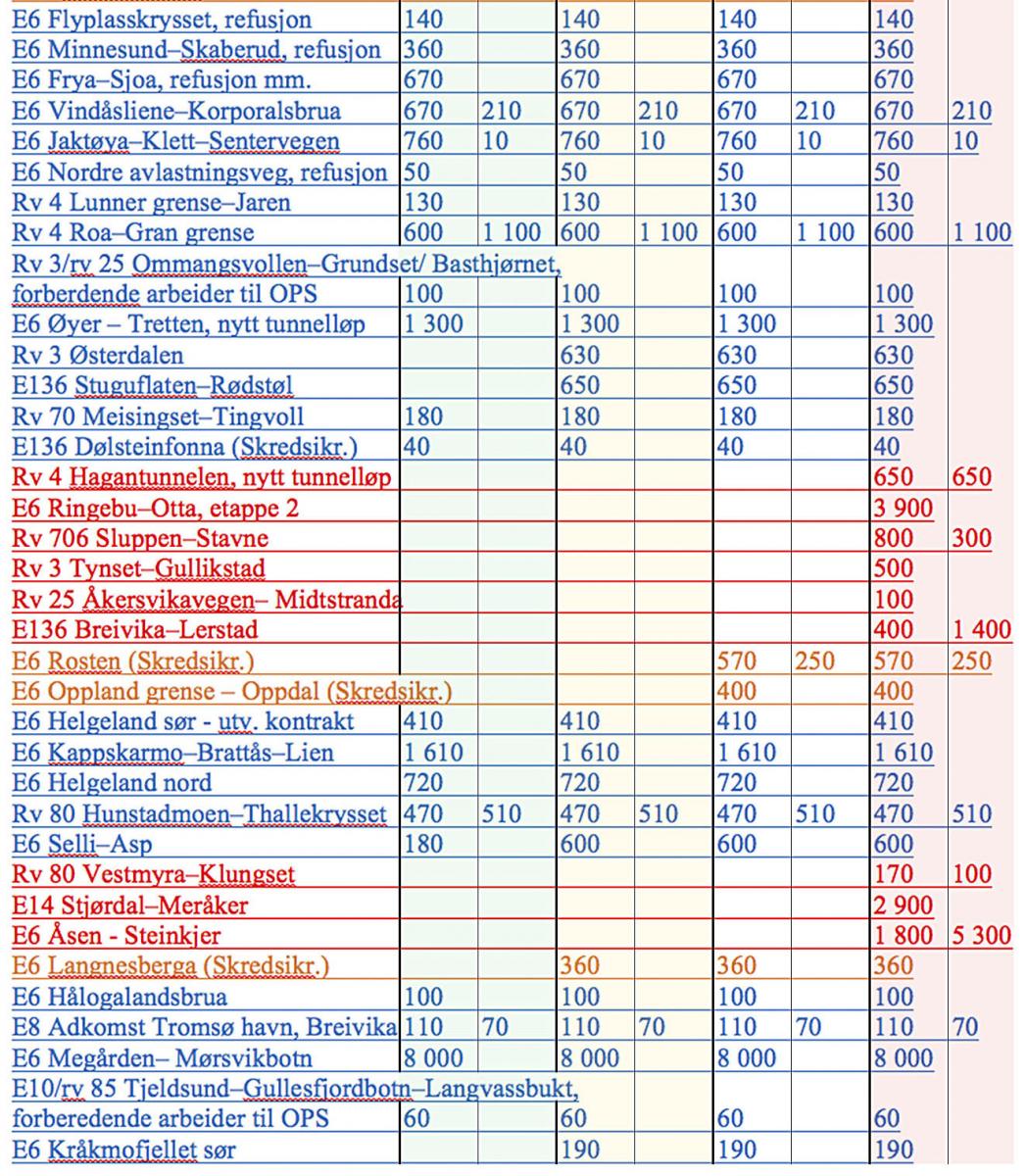 MERK: Regjeringen har fått 370 innspill på NTP-plandokumentet. Endringer vil derfor forekomme i det endelige forslaget.