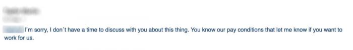 Her oppgis hele korrespondansen som følger, gjengitt ved skjermdumper i kronologisk rekkefølge, med oversettelser under. Kun sensitive personopplysninger er fjernet.