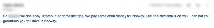 Spørsmålet dreier seg i all hovedsak om to potensielle lovbrudd. Det ene går på lønn ved innenrikskjøring: Alle sjåfører som kjører godstransport med lastebil fra ett punkt i Norge til et annet, har krav på norsk minstelønn. Denne er ved skrivende tidspunkt 171,45 kroner per time, tilsvarende 18 Euro (174,95 kr fra 1. april).