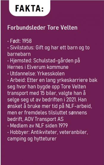 Stødig, arbeidsom, trygg og klok er ord som dukker opp når man skal beskrive Tore Velten. Han har allerede styrt forbundet trygt gjennom åtte år, og han ble enstemmig valgt inn for en ny periode under Landsmøtet. Han er likevel ydmyk overfor rollen.