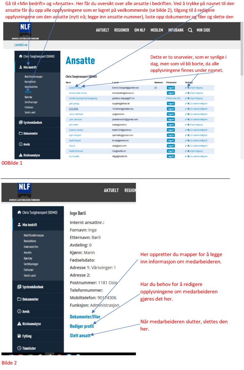 Det er nå lagt inn mulighet for å opprette en mappe (personalmappe) for hver enkelt ansatt. I mappen kan alle personopplysningene legges, slik som arbeidsavtale, kompetansebeviser, advarsler, utdannelse og praksis, mv. Sjåførene har tilgang til sin egen mappe, noe som innebærer at de kan få tilgang til f.eks. sin arbeidsavtale ved en kontroll ute på veien.
