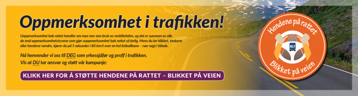 NLF minner alle lastebilsjåfører om å registrere seg selv som en ansvarlig sjåfør gjennom kampanjen «Hendene på rattet, blikket på veien».