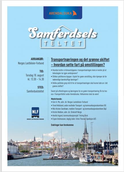 Svaret på utfordringene og løsningene for en grønn transportnæring får du hos oss i Transportteltet under Arendalsuka.