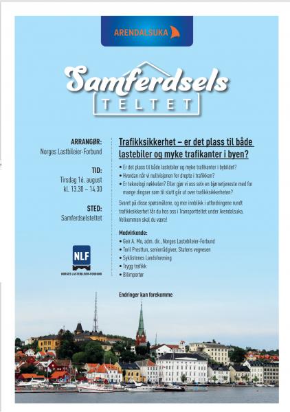 Torsdag 18. august kl 13:30-14:30 er det duket for nok et stort arrangement i Samferdselsteltet til NLF.