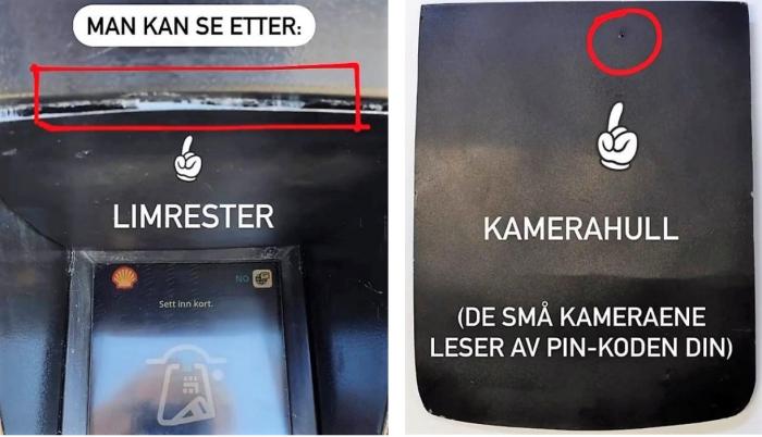 Bildet under viser hva du bør se etter for å unngå skimming: